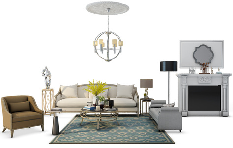 Z15-0629现代沙发茶几组合挂画