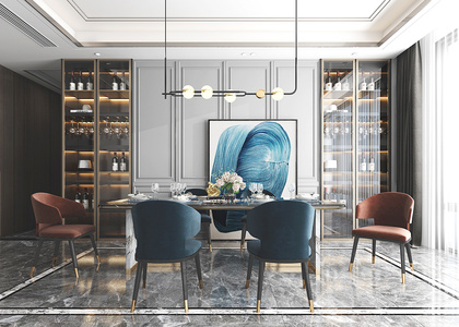 Z22-0721现代轻奢餐厅,餐桌椅,酒柜吊灯
