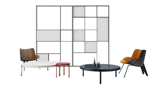 00-7现代办公休闲椅茶几隔断