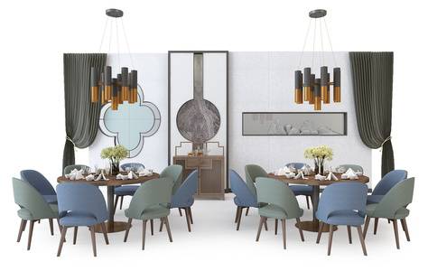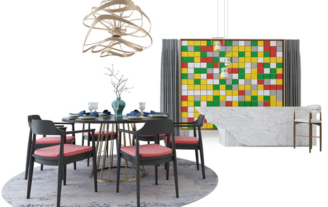 H12现代中式餐桌椅组合吧台