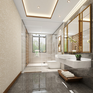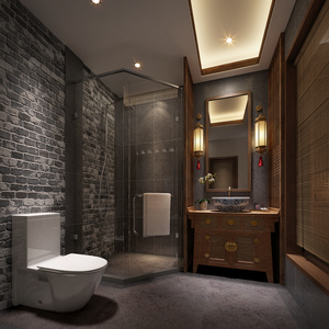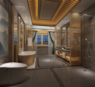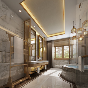 1-2新中式客房卫生间装饰架藤编编织吊灯