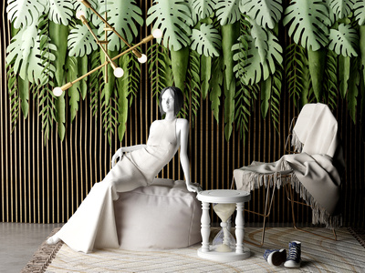 北欧人物模特绿植强服装店模特橱窗单椅组合