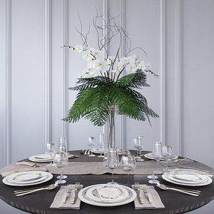 欧式圆形餐桌餐具摆件。玻璃花瓶