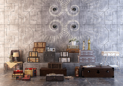工业LOFT箱子美式工业风橱窗,皮箱,手提箱,行李箱