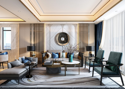 06新中式样板间别墅客厅,沙发茶几,卧榻,美人榻,贵妃榻,椅子花瓶,摆件,抱枕靠包
