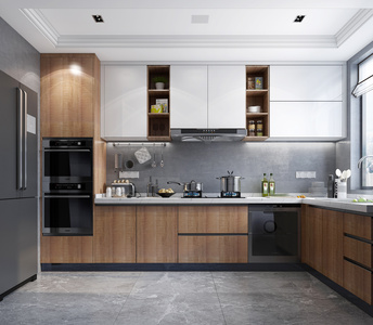14现代厨房橱柜冰箱灶具消毒柜不锈钢锅摆件