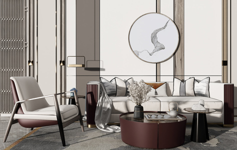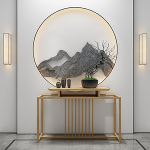 新中式实木玄关柜摆台条案干支盆景摆件圆形背景墙