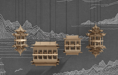 13新中式吊灯,古建筑,屋檐,古建宝塔,吊灯