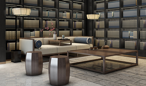 H06-0114新中式沙发茶几书柜罗汉床落地灯