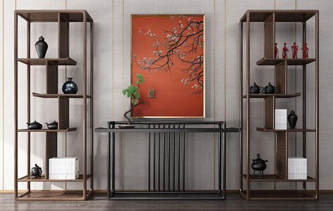 H30-1121新中式博古架与装饰柜书房书柜书架端景台摆台摆件