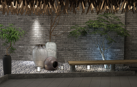 H12-0111新中式景观造景陶罐干支植物