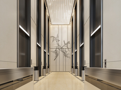 Z01-0618现代办公大厅大堂观光电梯门禁休闲沙发