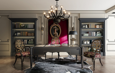 H06-0105欧式书桌椅书柜书房组合