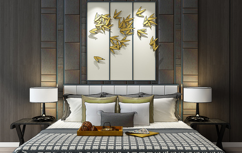 H16-0101新中式床立体画
