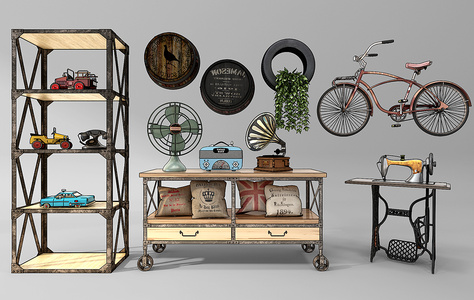 Z10-1213工业风装饰柜风扇自行车酒桶缝纫机留声机