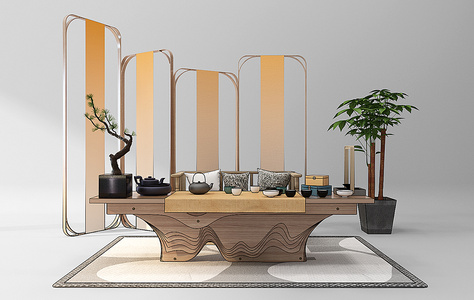 Z25-120新中式茶桌椅屏风组合