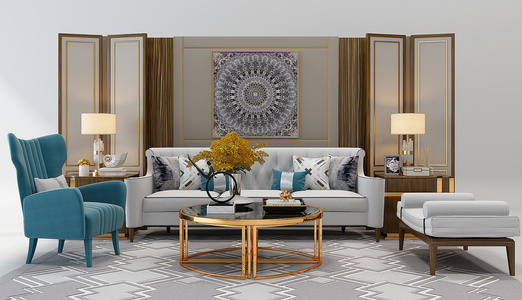 H28-休闲沙发高级灰沙发椅金属吊灯组合