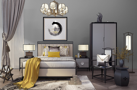 H02-1225新中式床头柜中式椅子边几毛毯落地灯