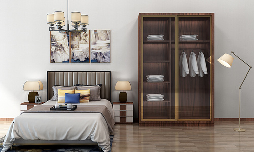 H17-1221新中式床床头柜台灯衣柜吊灯