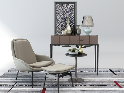 H21-1212北欧休闲沙发休闲椅单椅台灯装饰柜组合