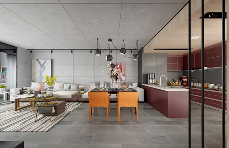 H02-0417工业风后现代客厅餐厅沙发茶几厨房橱柜