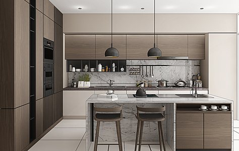 H11-0215现代餐厅厨房岛台橱柜餐具