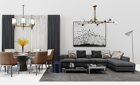 H21-0213现代客餐厅沙发茶几餐桌椅吊灯组合1