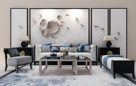 Z22-1227新中式沙发茶几台灯鱼群荷花挂饰
