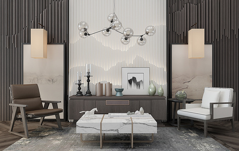 Z05-1228新中式屏风电视柜沙发椅吊灯组