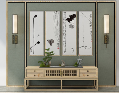 H26-1122新中式禅意水墨装饰画电视柜盆景