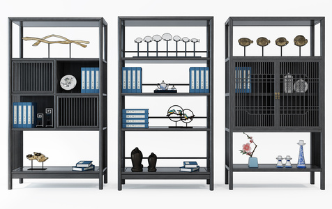H28-1122中式柜子书柜树摆件组合