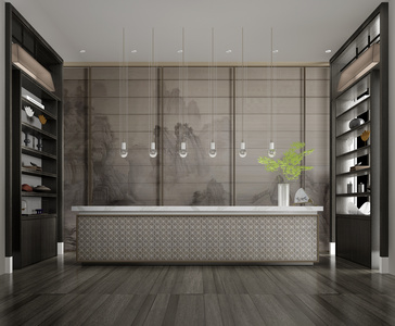 新中式前台,接待台