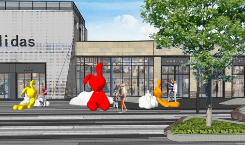 100-现代玩偶云朵座凳雕塑小品,商业景观兔子,商业街SU模型