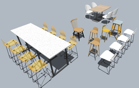 现代员工餐厅食堂餐桌椅吧椅吧凳