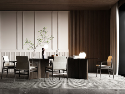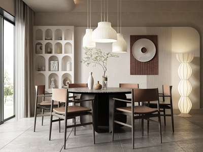 侘寂风餐厅圆形餐桌椅,