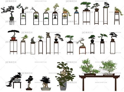 新中式盆景盆栽 造型松 罗汉松 黑松 艺术摆件