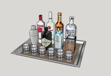 酒瓶+洋酒+杯子su模型