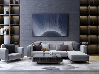 现代客厅 转角沙发 茶几组合