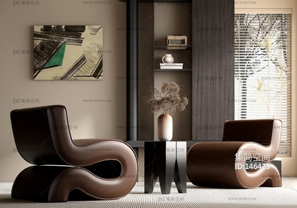现代轻奢休闲单人沙发 边几 角几 摆设组合