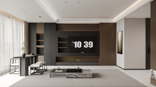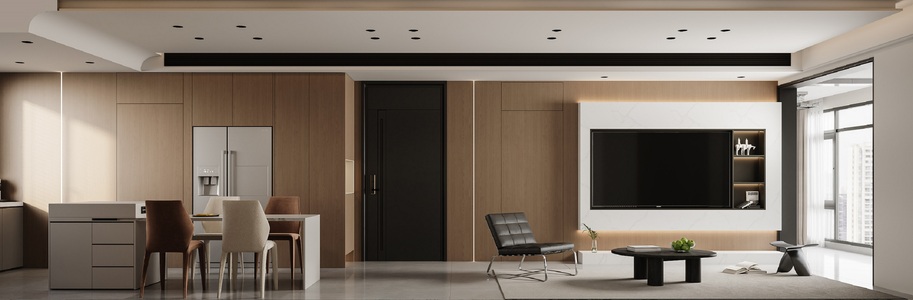 客餐厅现代客厅橱柜电视背景墙,奶油风休闲椅