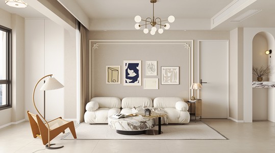轻法式奶油风客餐厅,现代沙发茶几餐桌椅
