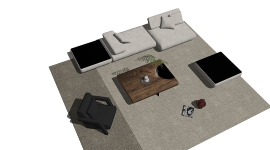 现代沙发组合,原木茶几地毯