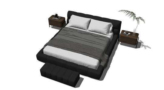 现代双人床,床头柜
