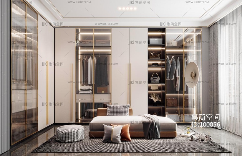 SY05-现代衣帽间,圆墩坐凳,落地灯卧榻 3d模型下载 [模型ID:100056]