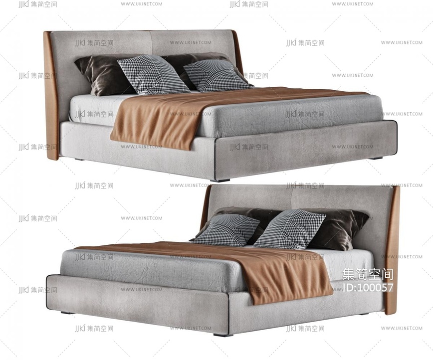 SY06-现代简欧式轻奢,皮革双人床 3d模型下载 [模型ID:100057]