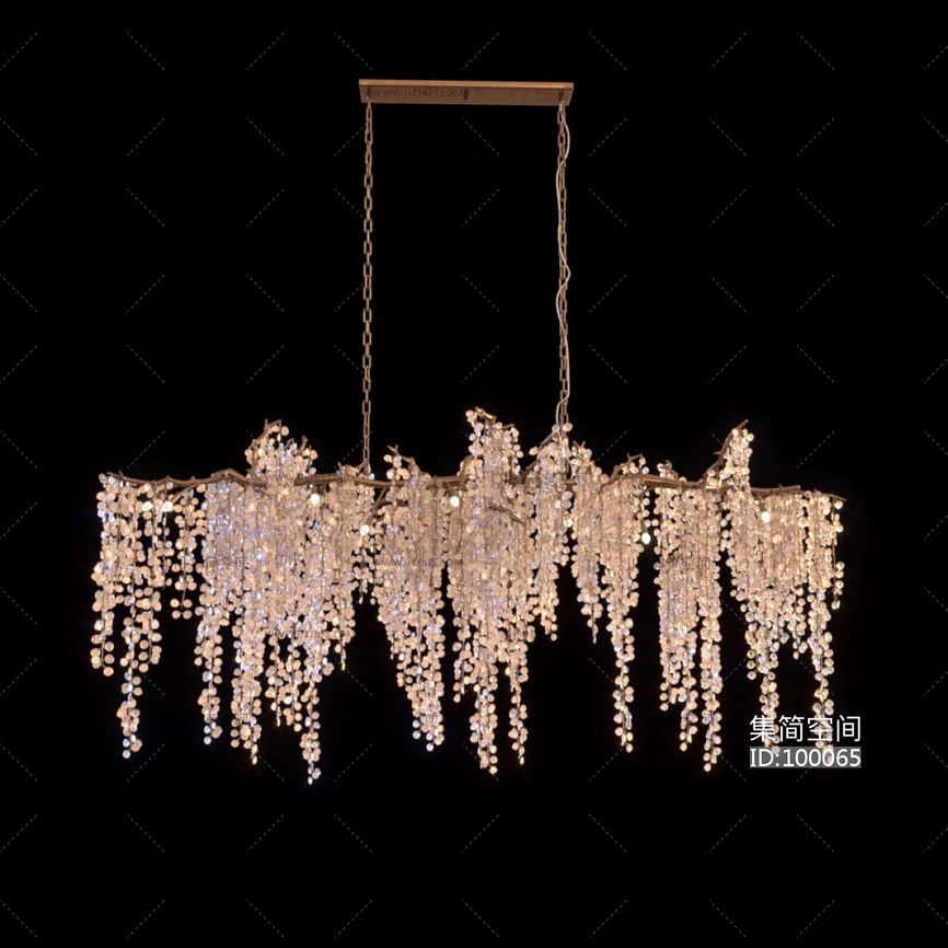 现代水晶吊灯 长条吊灯吸顶灯3D模型3d模型下载