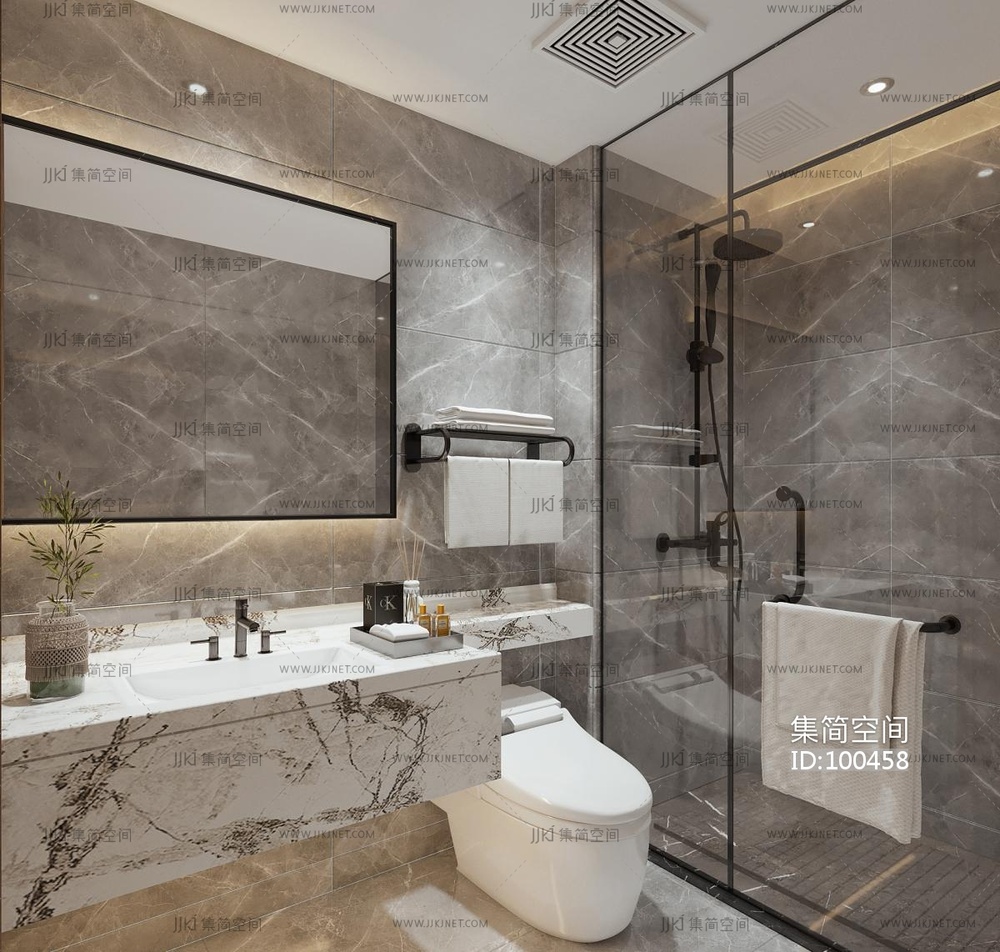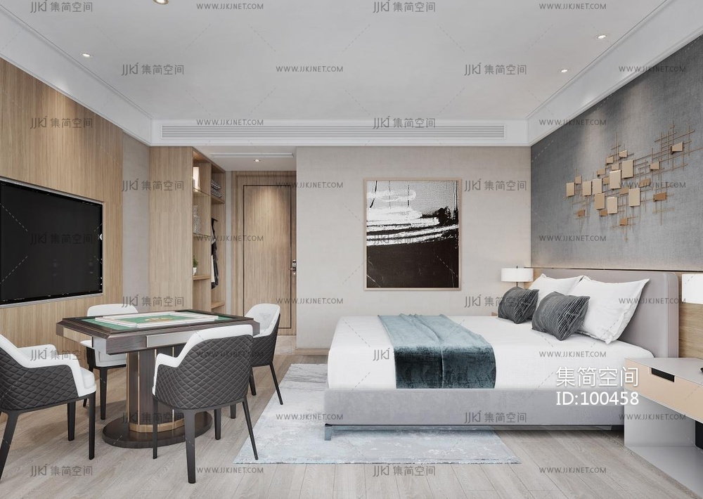 SY022_现代新中式酒店客房,双人床,大床房,,麻将桌,墙饰,卫生间 (1) 3d模型下载 [模型ID:100458]