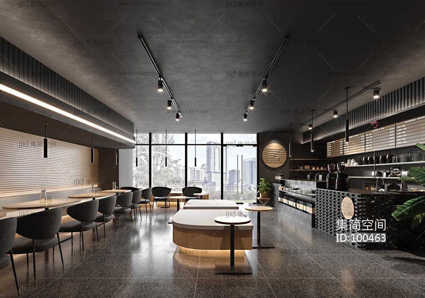 SY01_工业风咖啡厅,酒吧,沙发卡座吧台,吧台,储物柜墙饰吊灯,地砖 3d模型下载 [模型ID:100463]