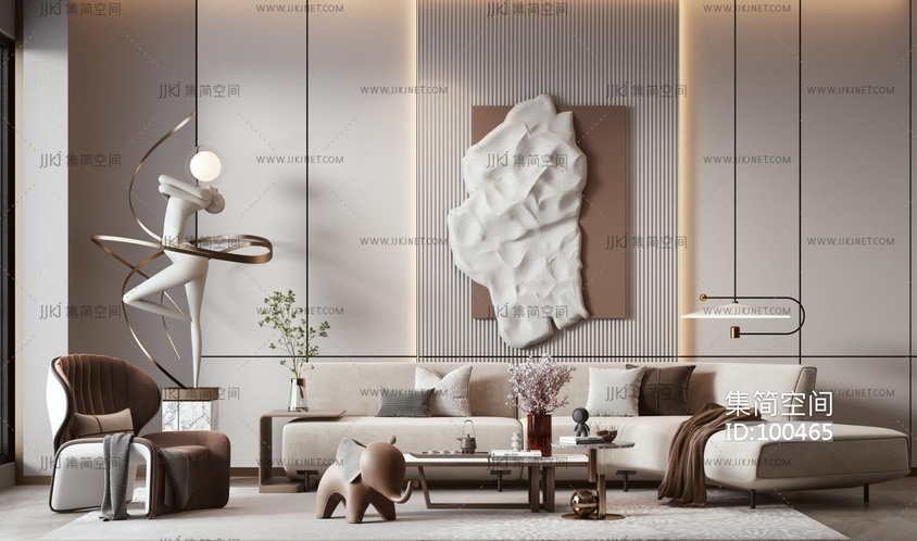 SY03_现代轻奢客厅,沙发,单人沙发雕塑落地灯,沙发座椅茶几组合,墙饰摆件无灯 3d模型下载 [模型ID:100465]