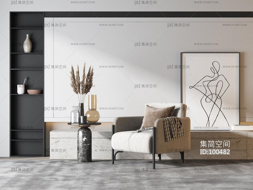 SY020_现代单人沙发,边几,摆件无灯 3d模型下载 [模型ID:100482]